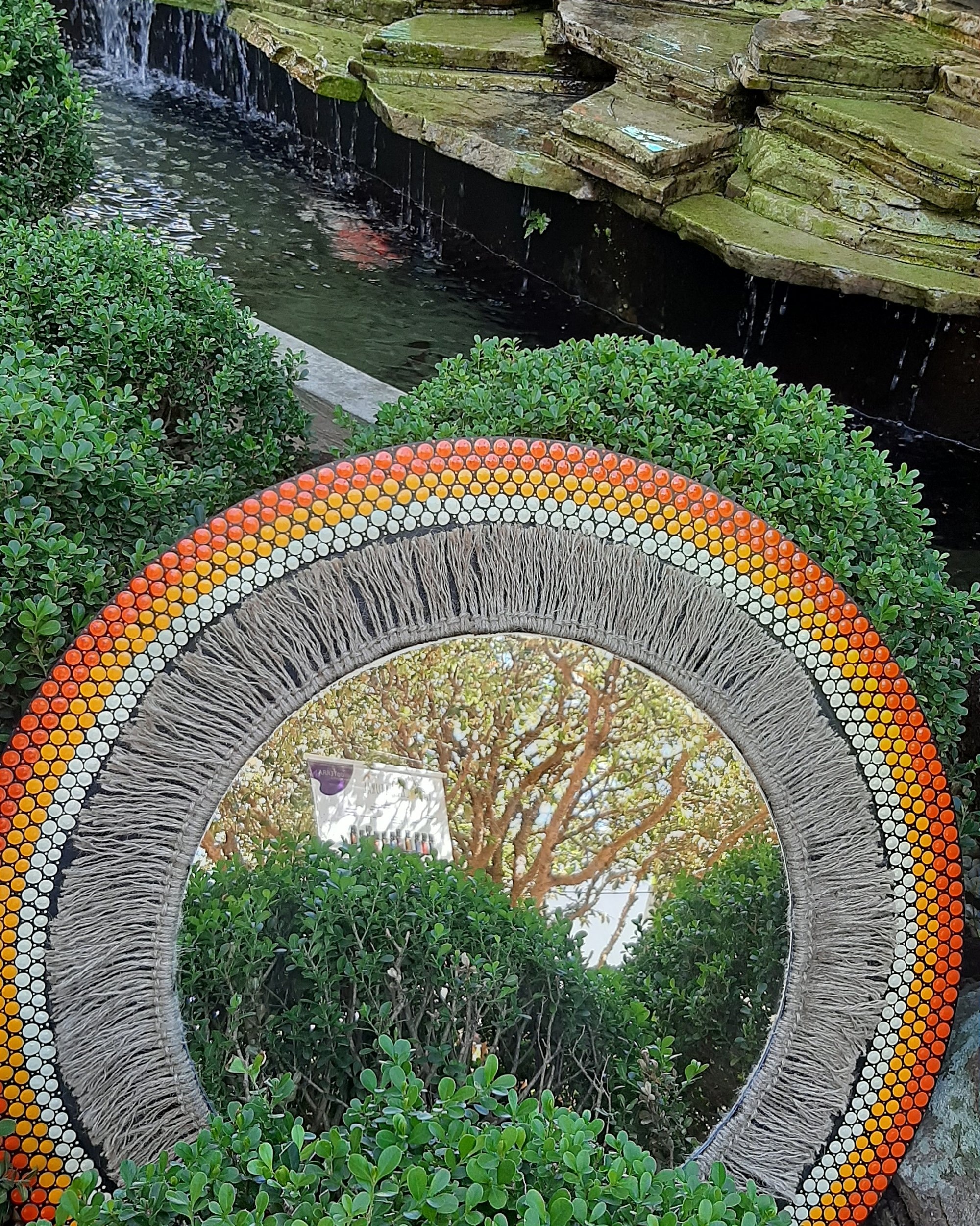 Detalhes: espelho 40cm e Boho juta
