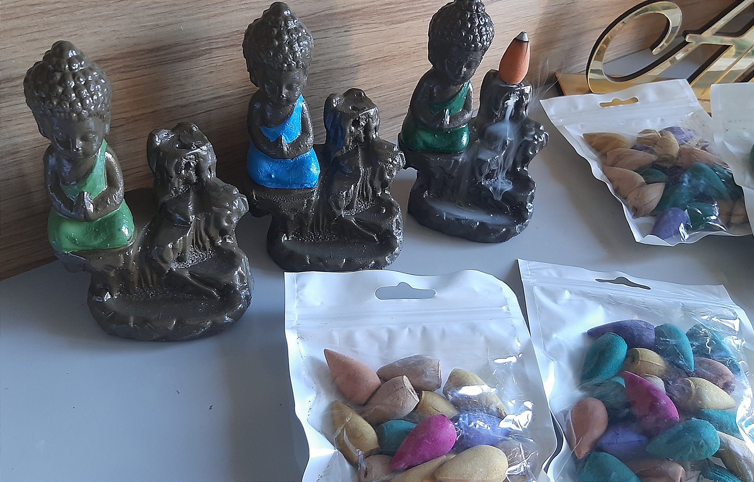 Mandala, velas aromáticas, difusor de aromas, arte em concreto, camisetas, ecobagecologicas